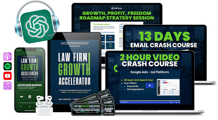 • FREE Audiobook version of the Law Firm Growth Accelerator Book ($197 Value)